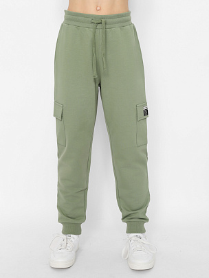 Брюки с притачным поясом и манжетами. Пояс из основного полотна и эластичной резинкой внутри. Низ брюк с притачными манжетами из полотна с добавлением лайкры. Задняя часть декорирована принтом "Реальный".