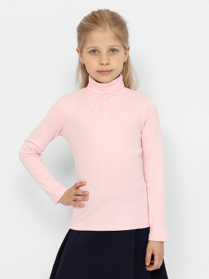Водолазка с длинными рукавами и высоким воротником "стойкой" с отворотом. Воротник выполнен из полотна с эластаном.