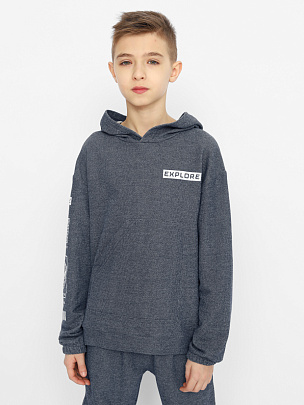 Джемпер мужской прямого силуэта с притачным поясом, рукава с манжетами, со спущенным плечом. Круглая горловина обработана узкой притачной обтачкой из рибаны с эластаном. Полочка декорирована принтом.