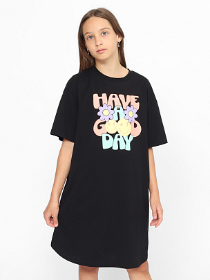 Футболка oversize с короткими рукавами. Горловина круглая, обработана притачной бейкой из рибаны с лайкрой. Перед футболки декорирован принтом с использованием глиттера.